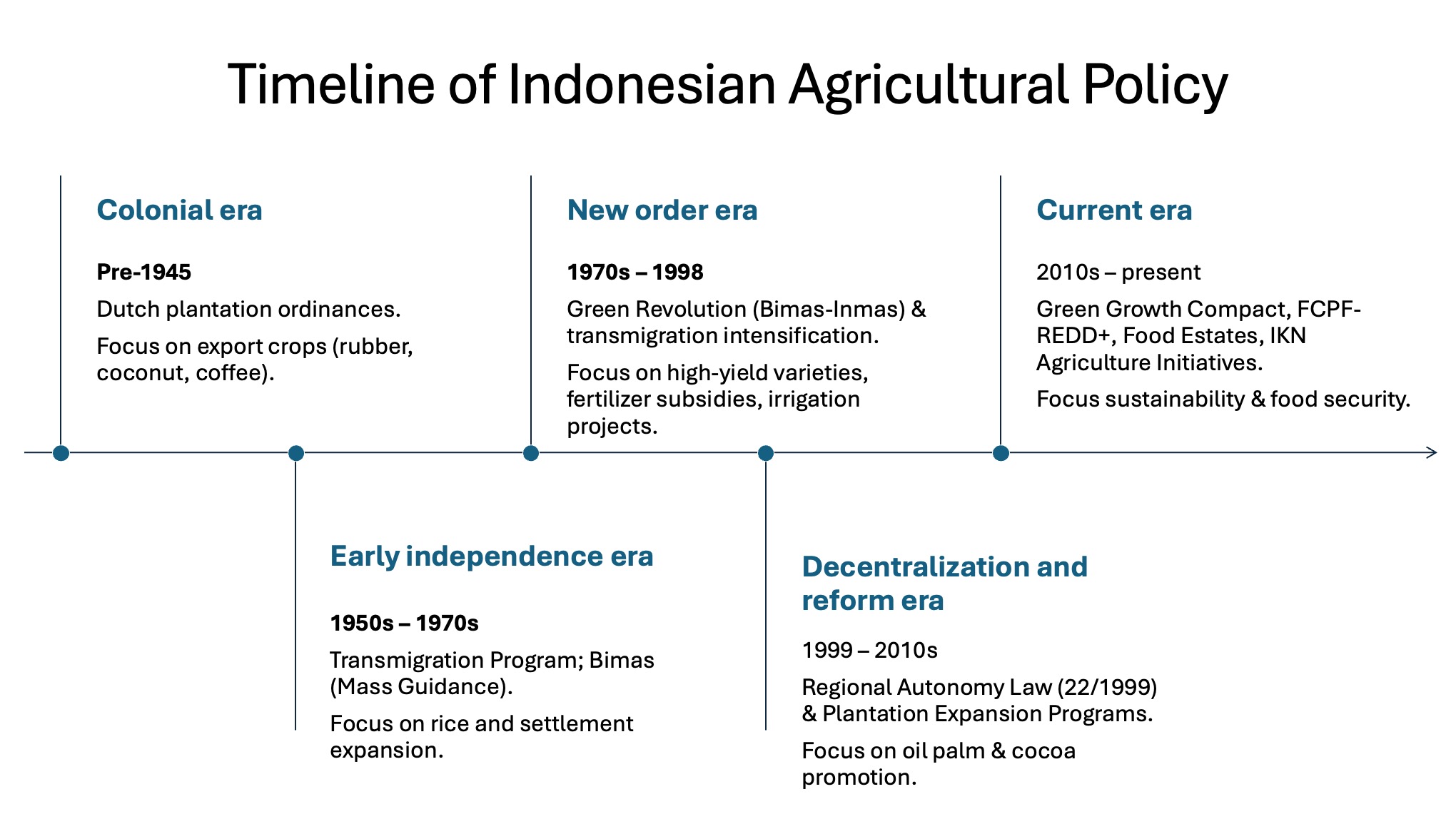 Underlying these pressures on food security and livelihoods are land and governance challenges. Land expansion for commodity crops reduces space for food farming, while fragmentation of farmland into smaller plots limits efficiency and long-term investment. Indonesia’s diverse geography adds further stress, with mountainous terrain, drought-prone regions, and rising sea levels shaping uneven agricultural viability. On the governance side, centralized and top-down approaches often impose uniform policies that fail to reflect local realities. Limited use of research evidence slows the uptake of climate-smart practices, and the exclusion of women, indigenous peoples, and marginalized groups deepens inequality.