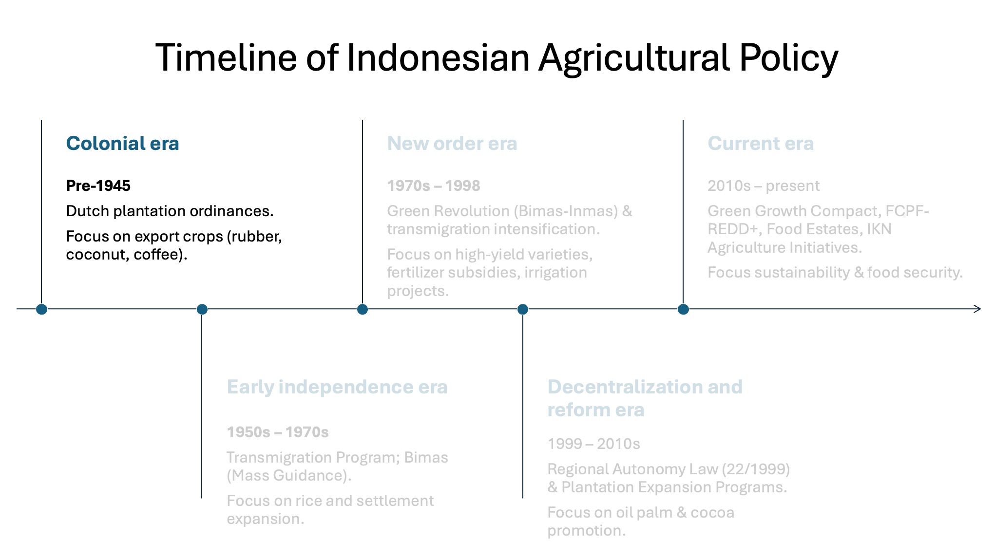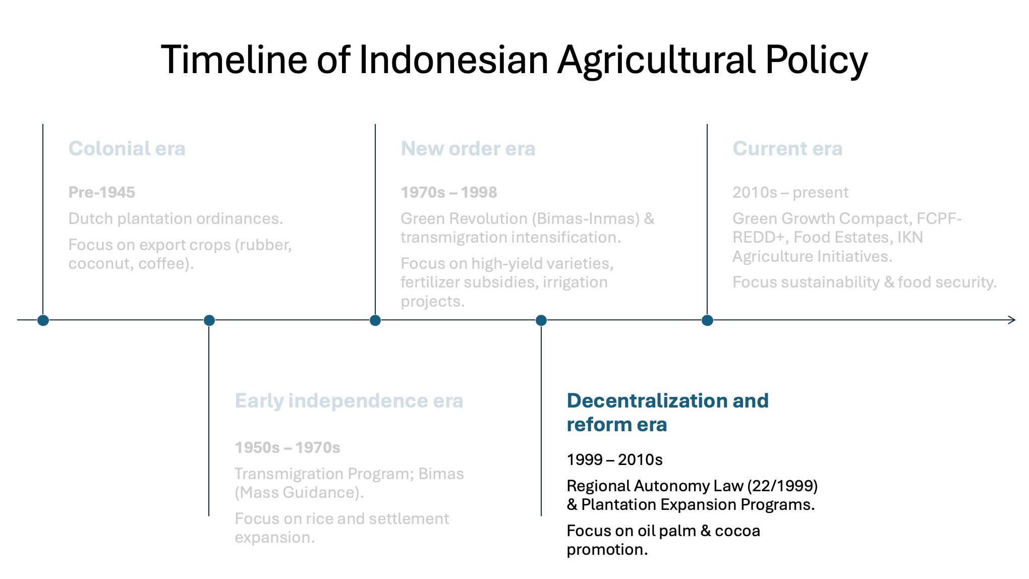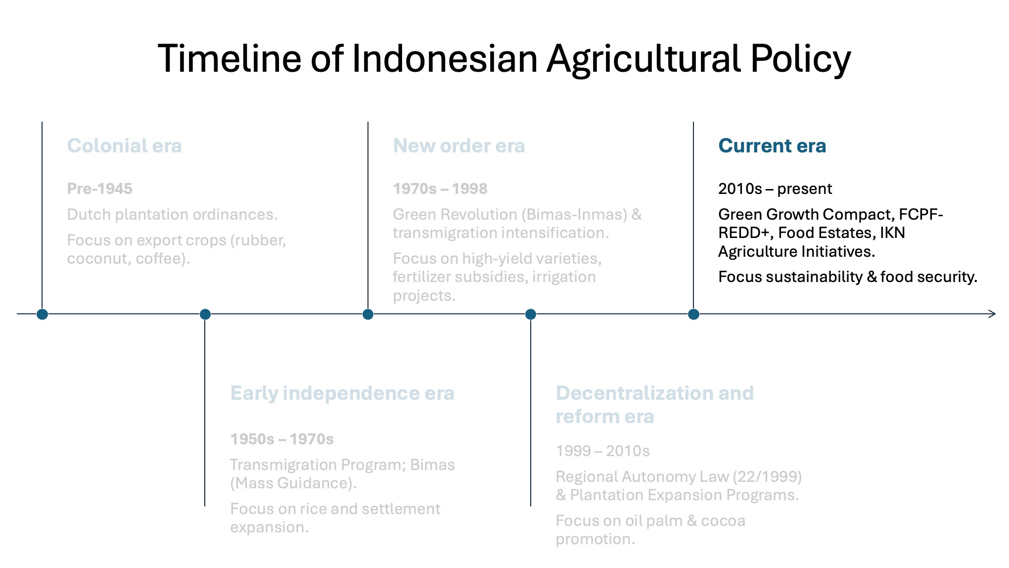 Driven by the Provincial Food Estate Program, Gorontalo’s agriculture has historically shifted from production of local foods for local consumption to market-oriented cash crops. More recently the environmental and social consequences of this transition have led some to argue for a shift to more sustainable agricultural techniques.